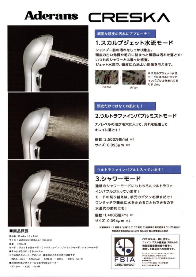 アデランス シャワー ヘッド 水流 切替 ナノバブル クレスカ 節水 取付 簡単 高級 重厚 使いやすい スカルプ 育毛 マッサージ 洗浄 メイク 泡 ミスト 細かい