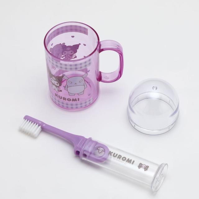 歯ブラシ デンタルキット 歯ブラシ付き KUお友だち ( クロミ コップ 携帯用 携帯用歯ブラシセット 子ども用歯ブラシ ふつう 14.5cm 自立 ケース付き 歯ブラシケース 携帯用歯磨き セット ケース ふつう毛 歯磨き )