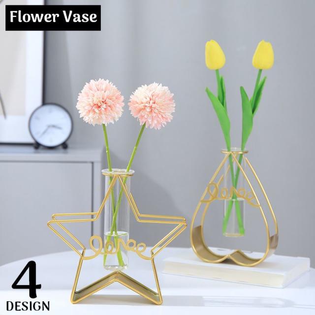 花瓶 花びん フラワーベース 花器 ガラスシリンダー 試験管 金属枠 幾何学 装飾 インテリア 一輪挿し 生け花 おしゃれ 北欧