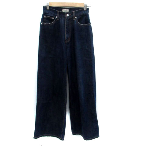 【中古】エヴリス デニムパンツ ジーンズ バギーパンツ ワイドパンツ ロング丈 ダメージ加工 M ネイビー レディース