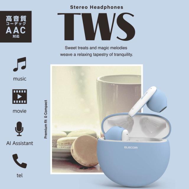 エレコム Bluetoothイヤホン 完全ワイヤレス ヘッドホン AAC対応 低遅延モード セミオープン タッチセンサー マカロンブルー┃LBT-TWS17CSBU