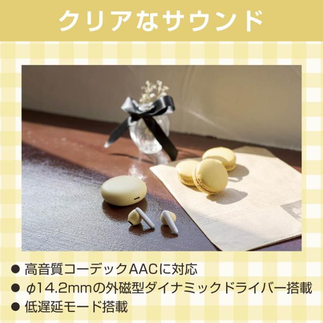 【在庫処分・お買い得!】 エレコム Bluetoothイヤホン 完全ワイヤレス ヘッドホン AAC対応 低遅延モード セミオープン タッチセンサー マカロンイエロー┃LBT-TWS17CSYL