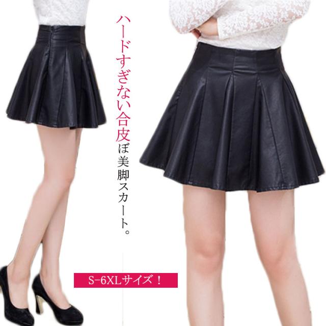 フェイクレザー フレアスカート スカート レザースカート フェイクレザー フレアスカート ミニスカート ショート フレア レディース 秋冬 大きサイズ送料無料