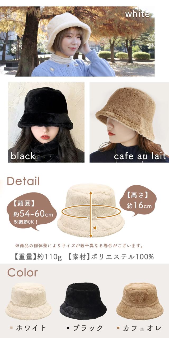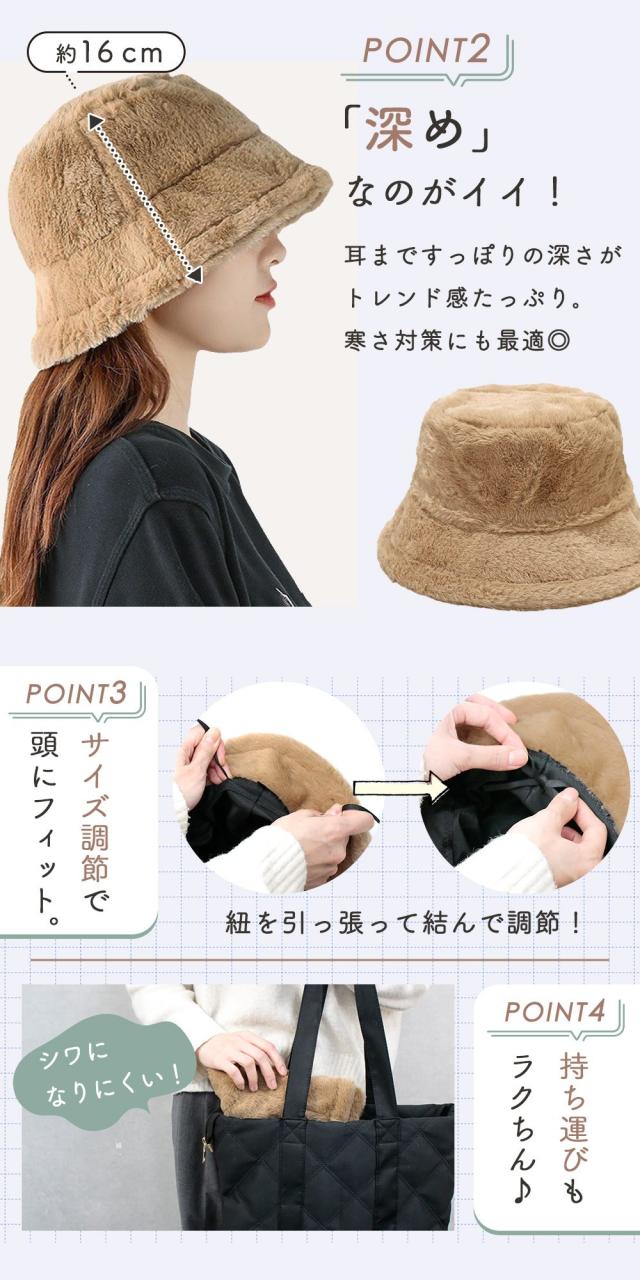 バケットハット ファー 深め ハット 帽子 レディース 冬 女性 防寒 かわいい エコファー 大きいサイズ 秋冬 コーデ あったか 大きめ サイズ調整 冬コーデ 可愛い 軽量 小物 春 30代 40代 50代 お出かけ 旅行 スポーツ観戦 フェイクファーハット 無地 MILASIC TN-BKTH