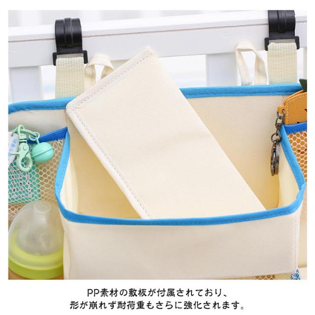 | ママの生活をもっと便利に♪ 使わない時は折りたたんで収納しておくことの出来る、 大容量のベッドサイドポケットです。 身近なものを見やすく収納することが出来て、 サッと取り出せて便利です。 おもちゃや小物、ティッシュやオムツなど、 必要なものをまとめて入れておけます◎ サイドに付いているポケットには 哺乳瓶やリモコンを入れることが出来ます。 PP素材の敷板が付属されており、 形が崩れず耐荷重もさらに強化されます。 取り付けも簡単で、 安定性がありますので使い勝手も抜群です。 | |