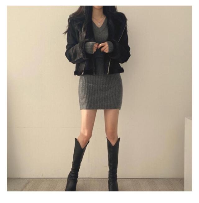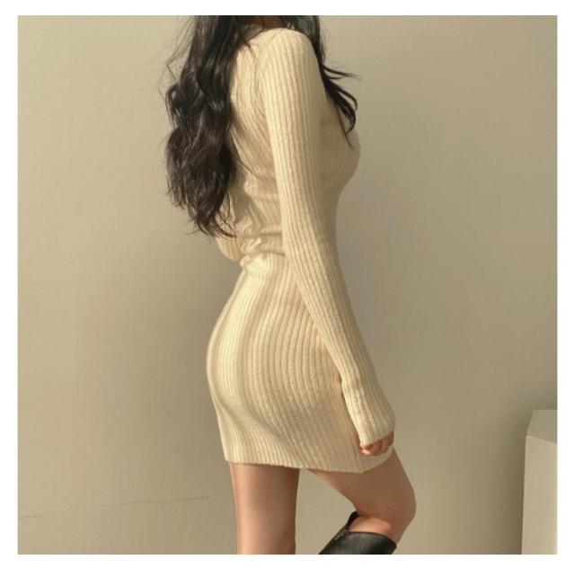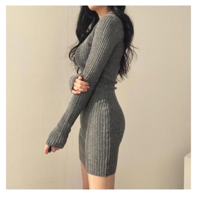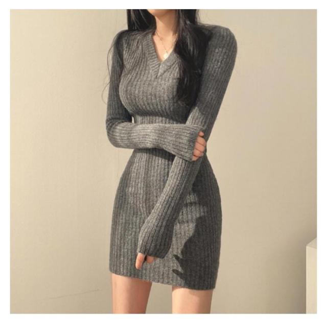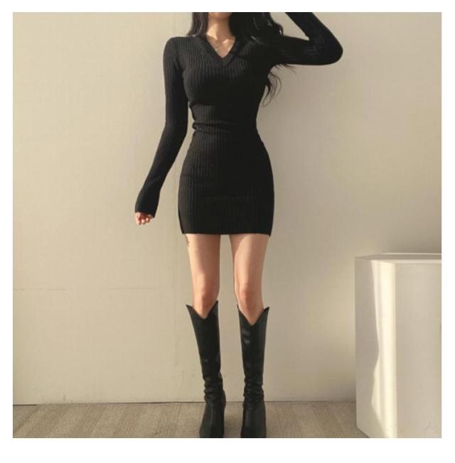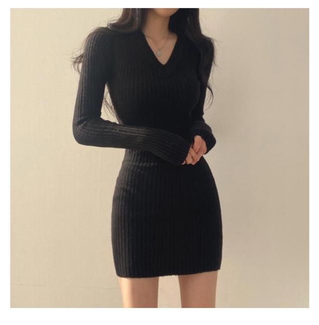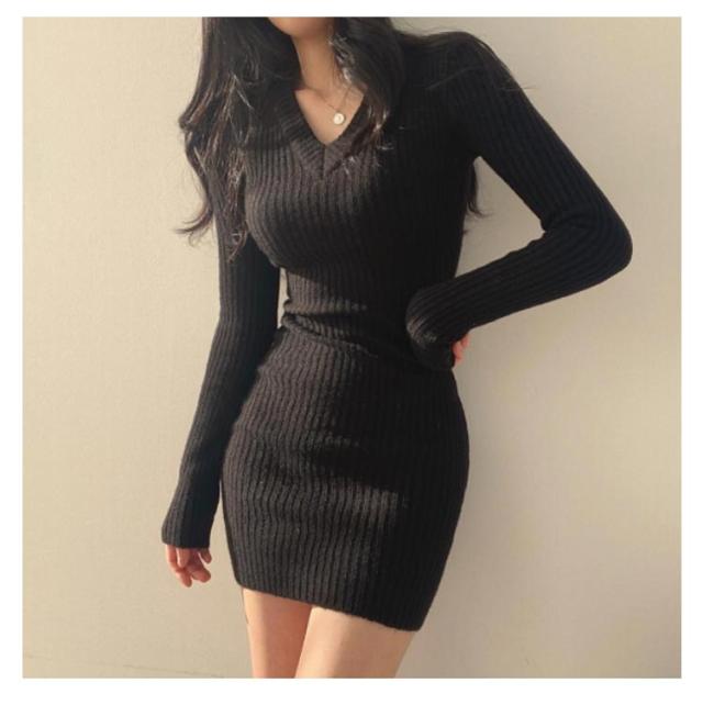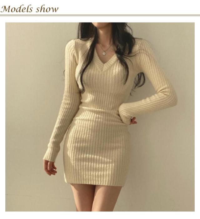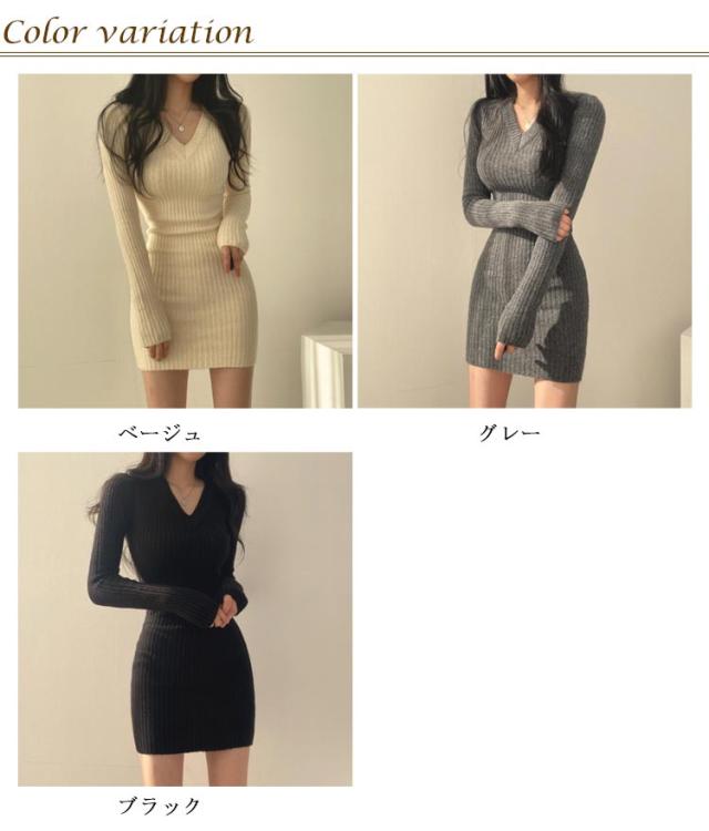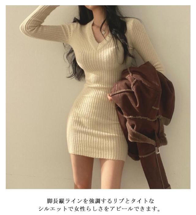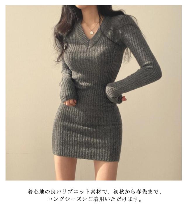 韓国風 ニットワンピース 秋冬 Vネック ニットタイトワンピース ニットワンピース ストレッチ 伸縮性 長袖 おしゃれ タイトワンピース 可愛い ワンピース リブニットワンピ ニットタイトワンピース 黒 膝上丈 ミニ丈 きれいめ タイト 重ね着 パーティドレス 二次会 結婚式 OL