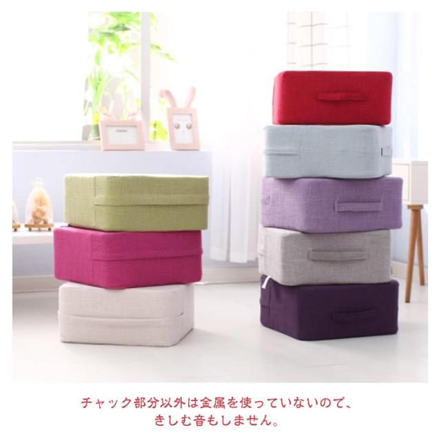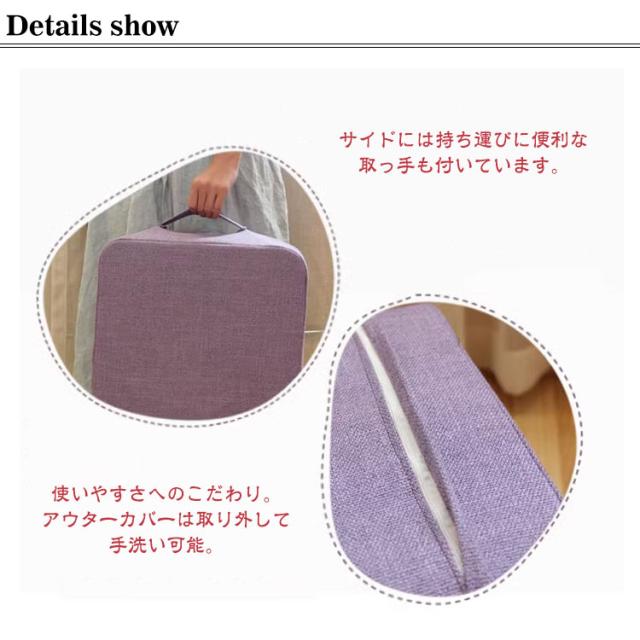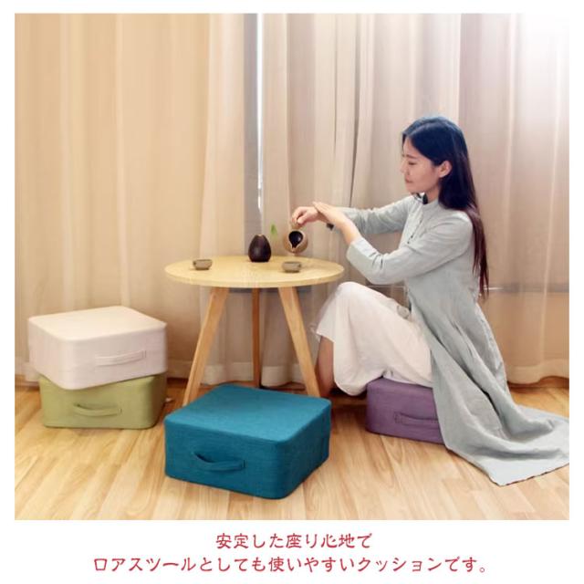 | しっかり衝撃吸収!座り心地のいいスクエアクッション 表地はサラサラ快適な麻素材を採用する。通気性抜群でいつも爽やかな座り心地を実現。 騒音軽減で安心。遮音効果層も取り入れた多層構造なので、音が床に響きにくく安心して使用可能。チャック部分以外は金属を使っていないので、きしむ音もしません。 使いやすさへのこだわり。アウタ一カバ一は取り外して手洗い可能。サイドには持ち運びに便利な取っ手も付いています。 安定した座り心地でフロアスツ一ルとしても使いやすいクッションです。 無地のデザインは和室にも洋室にも合わせやすい。 | |