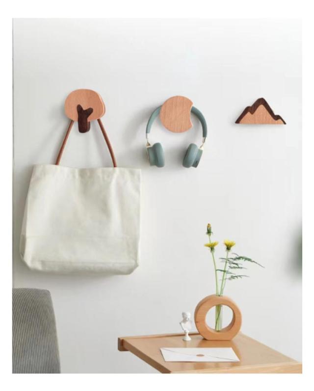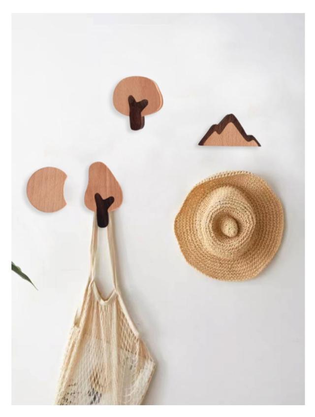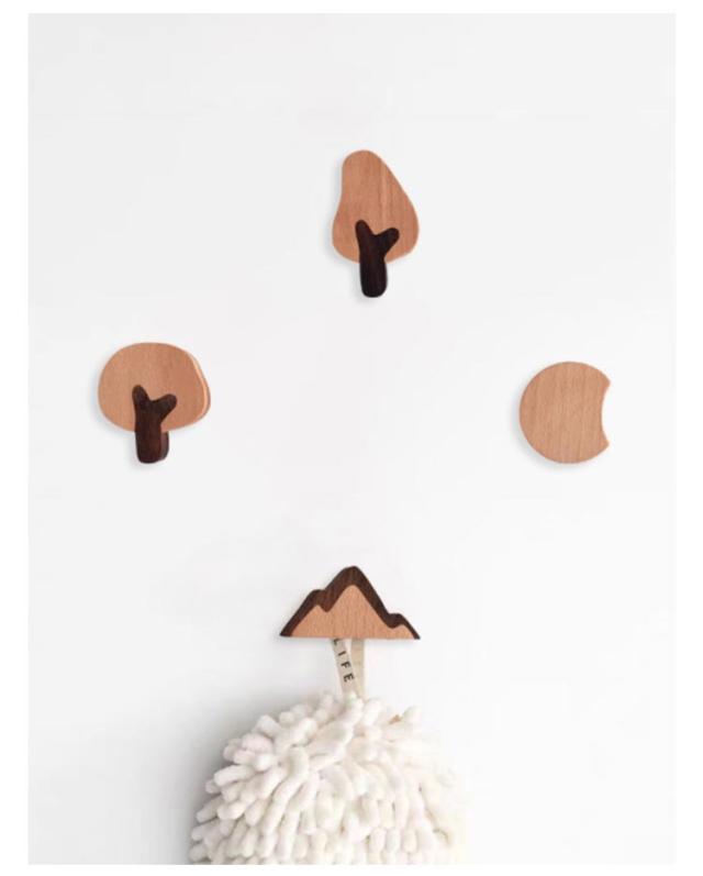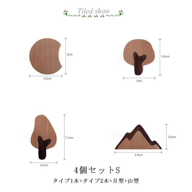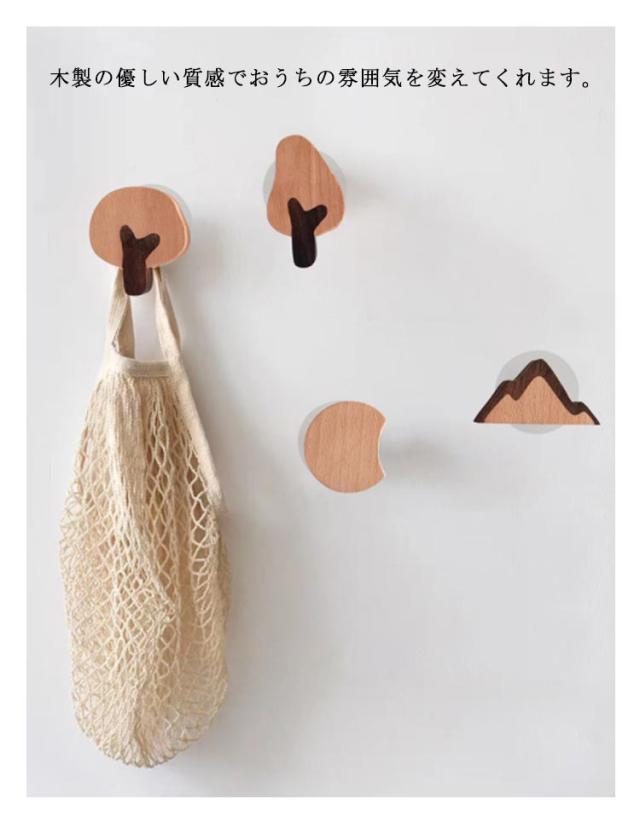 フック 木製フック 木 月 山 壁掛けフック キーフック ウォールフック 4個セット ハワイアン アジアン 北欧雑貨 おしゃれ かわいい シンプル アンティーク 壁掛けハンガー ウッディ 木彫 木製 玄関 インテリア 粘着 雑貨 ウォールフック 子供部屋 かばん掛け 帽子掛け