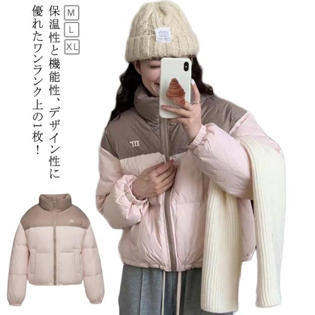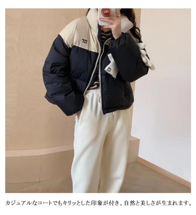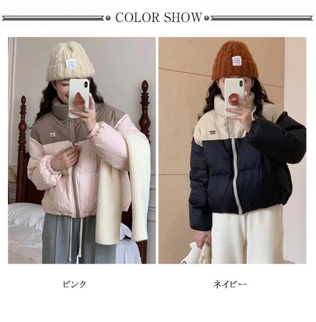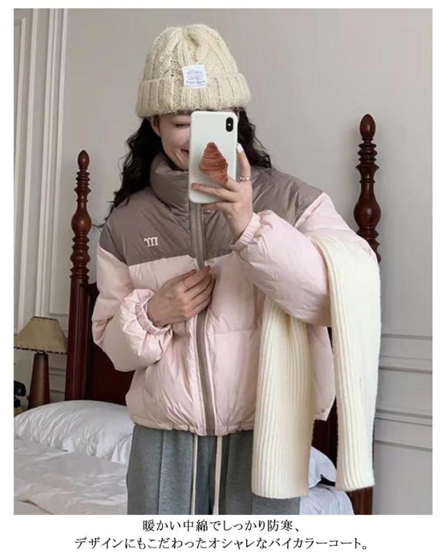 ダウンコート コート レディース 冬 バイカラー ダウンジャケット ショートコート ポケット付き 秋 冬 アウター ジャンパー 前開き あったか 厚手 暖かい 防寒 カジュアル 韓国 ベンチコート ショート 送料無料