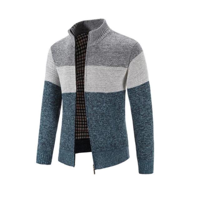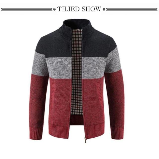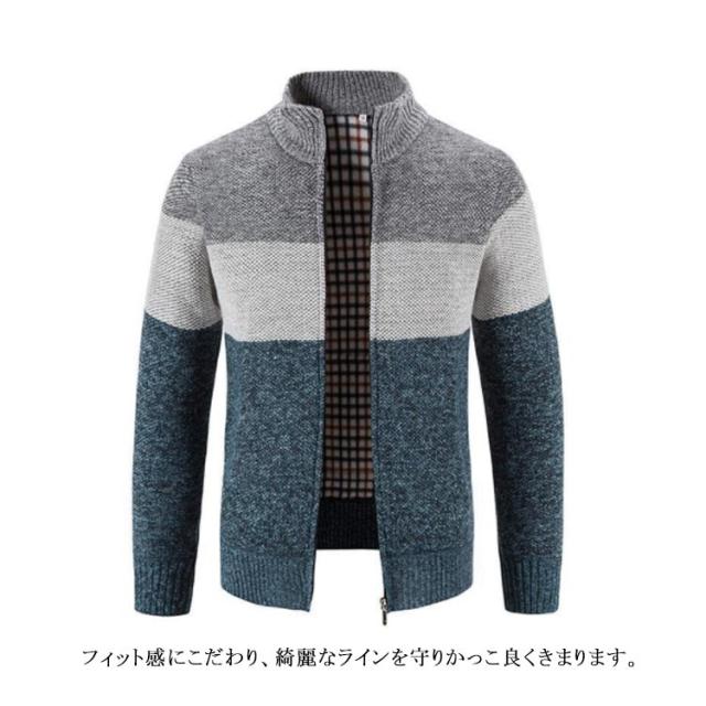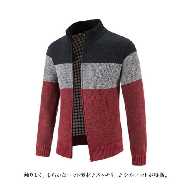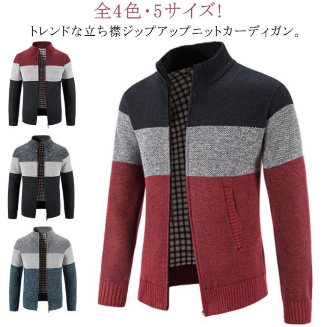 全4色・5サイズ!裏チェック ニットカーディガン カーディガン ジップアップ メンズ ニットセーター パーカー 防寒 ジャケット 厚手 立ち襟 保温 カジュアル 春物 秋物 冬物 羽織り