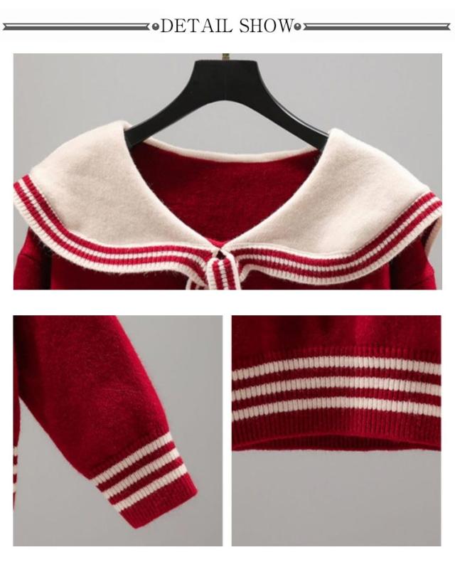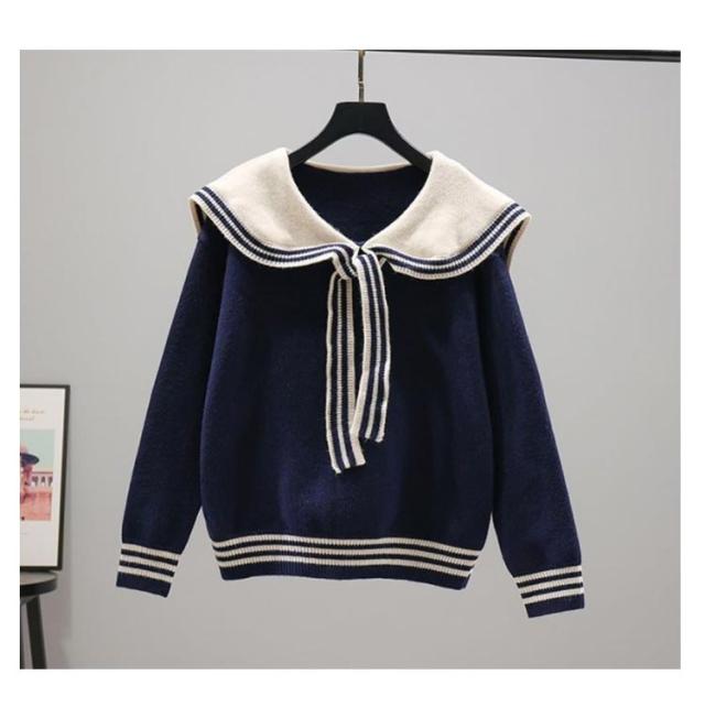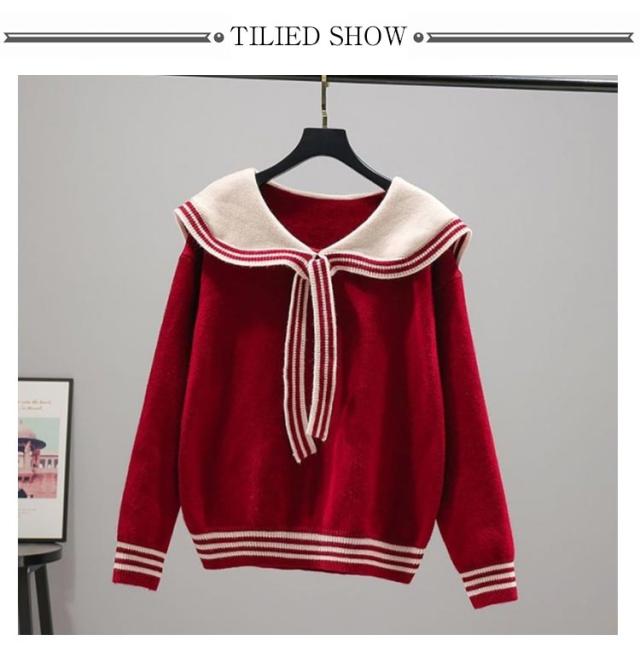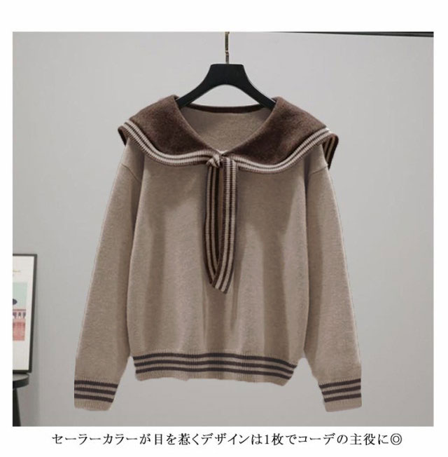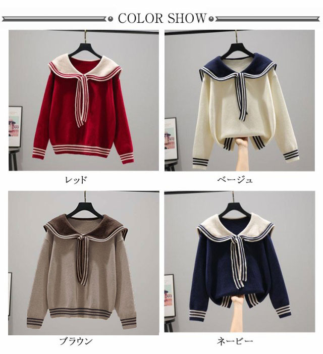 ニット セーター セーラーカラーニット 襟付き ニットトップス プルオーバー レディース 可愛い セーラー服 通学 女の子 中学生 秋 冬