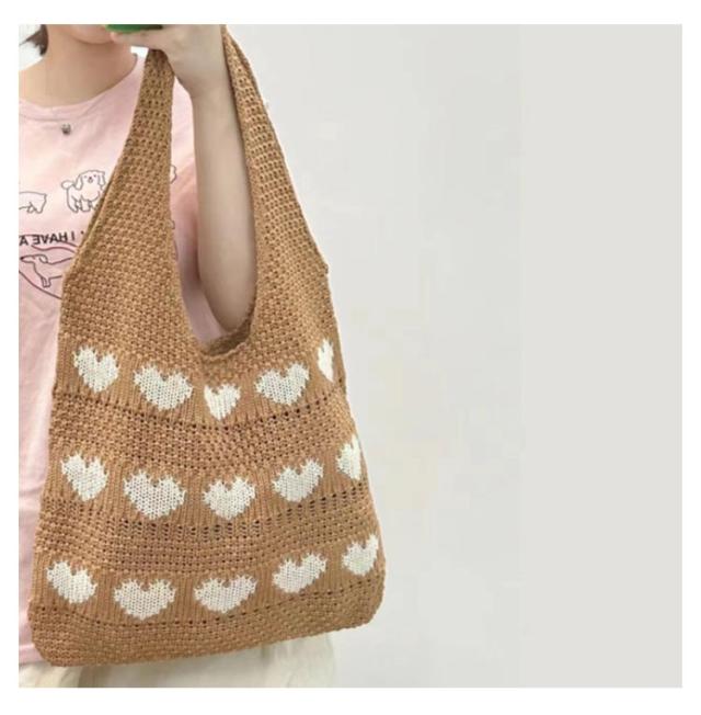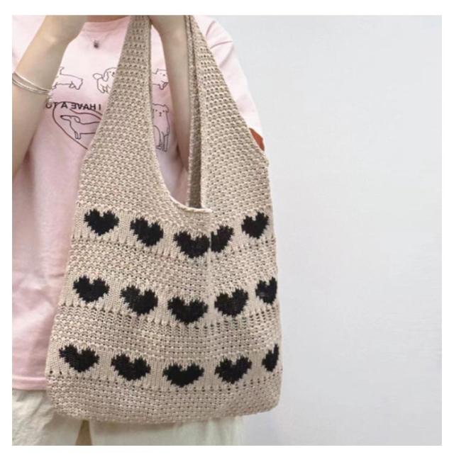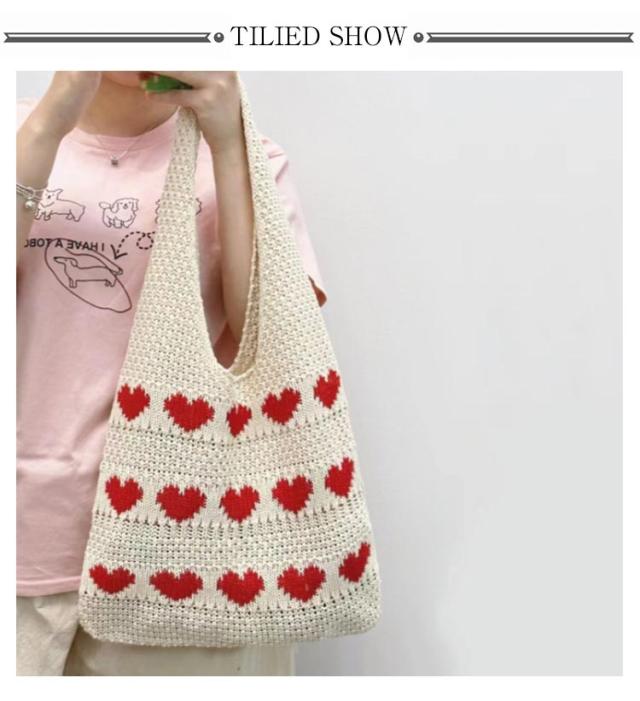 ニットバッグ トートバッグ レディース かわいい ニット A4サイズ おしゃれ ハート柄 マチあり かばん 鞄 軽量 軽い 長め 持ちやすい 伸縮性 ケーブル 通学 買い物 シンプル カジュアル ニットバッグ カジュアル 韓国ファッション 送料無料