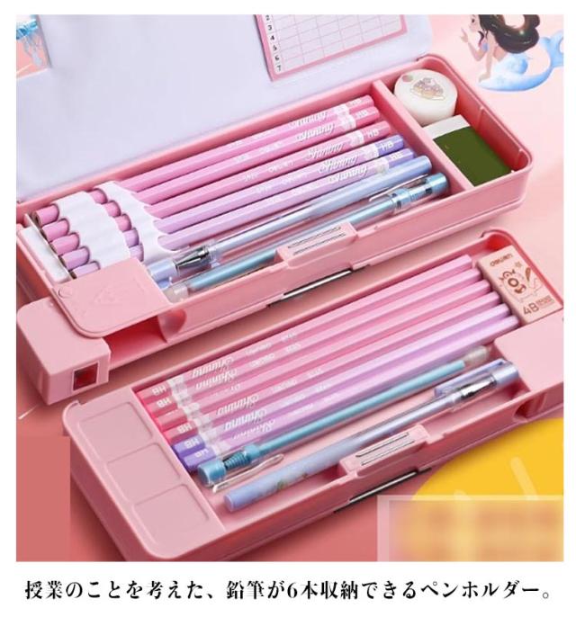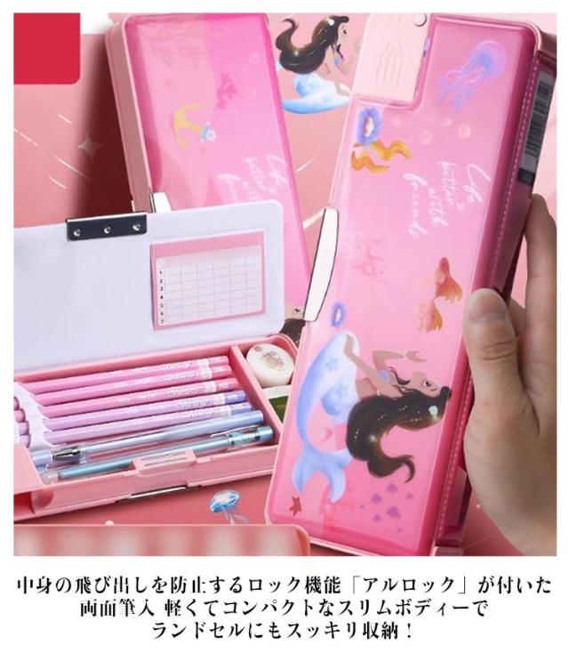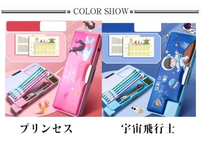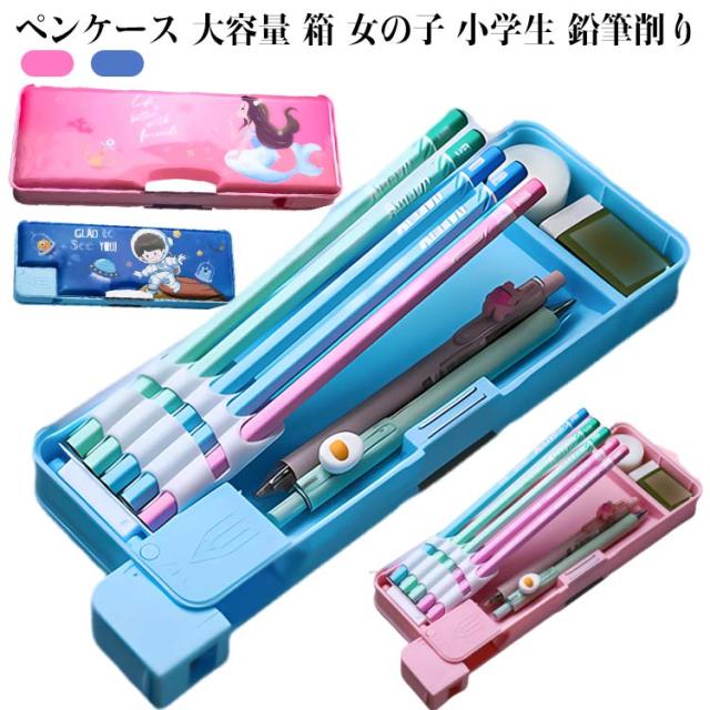 ペンケース 大容量 箱 女の子 小学生 鉛筆削り かわいい 小学生女の子かわいい筆入 筆箱 鉛筆削り付き 多機能 便利 両面スリム アルロック プリンセス 宇宙飛行士 送料無料