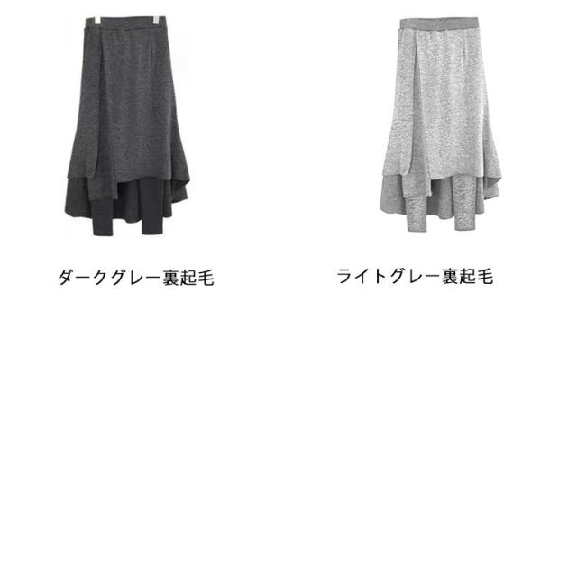 大きサイズ レイヤード キュロットパンツ 重ね着風 スカート付きレギンス レギンス付きスカート ミモレ丈 アシメトリー スカート レギンス 裏起毛 秋 冬