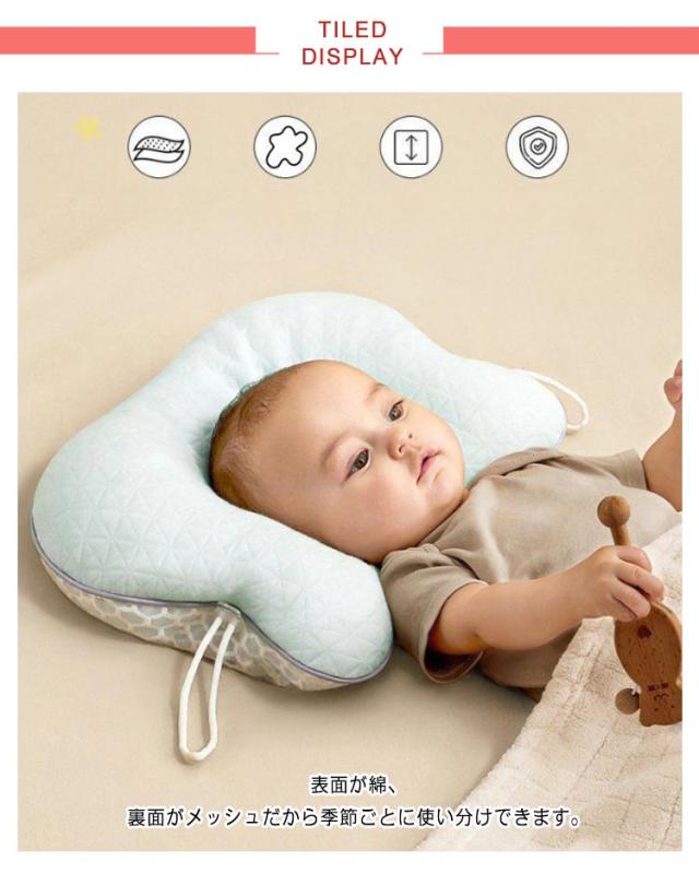 | 【ベビー枕 絶壁防止】 【3面高さ調節・向き癖調節】 【丸洗い可能】 【通気性抜群】 紐を引いて3面高さを調整できるから、あらゆる向き癖に対応できます。 表面が綿、裏面がメッシュだから季節ごとに使い分けできます。 程よい高さ、首のカーブに優しくフィット。上体をやや高くして寝かせることで、胃からミルクが上がってくるのを防ぎます。 通気性に優れた、コットンを使用!通気性も抜群で、汗もしっかり吸収します。 丸洗いOKでいつも清潔に! | |