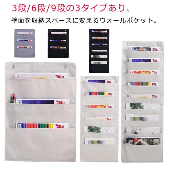 | 3段/6段/9段の3タイプあり、壁面を収納スペースに変えるウォールポケット。 上部の2つ穴にフックを通し、壁やドアにかけるだけで取り外し簡単。 デスク周りの書類整理、雑誌、冊子などのA4サイズのものを収納はもちろん、工夫次第で洗面室のタオルや洗濯ネット、クローゼット内でネクタイやスカーフ、ファッション小物など様々な収納で大活躍。 オフィスや在宅勤務のワークスペースでの伝票や書類、封書などの収納に便利。様々な種類がありますので、使うシーンによって選ぶ事ができます。 本体は耐久性がありながらも薄型設計になっており、未使用時はコンパクトに折り畳めます。 無地×落ち着いたカラーデザインにより景観を崩すことないため設置場所を選びません。 | |