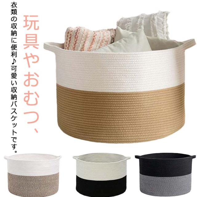 洗濯かご バスケット 収納かご ロープバスケット ロープバスケット 収納かご 大容量 S ランドス L 折りたたみ カーペット ロープストレージ M ストレージバスケット 円柱型 おもちゃ入れ かご 取っ手付き 持ち運べる