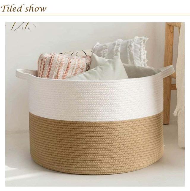 | 玩具やおむつ、衣類の収納に便利♪可愛い収納バスケットです。 シンプルカラーで、どこに置いても馴染むので、子供部屋ではおもちゃ収納用やランドリーに活躍! 枕や毛布、布団、クッションなどを家に収納するのがおすすめで、他にも洗濯かごやおもちゃ入れなどを活用することができます。 綿糸バスケットは折りたたみ式なので、使わないときは折りたたんで収納でき、スペースを取らない。 また、取っ手付きで持ち運びが簡単で、柔らかくて持ちやすい。他の場所に持って行くのも便利です。 | |
