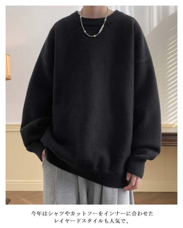 メンズ セーター ニット オーバーサイズ ゆったり 秋 クルーネック ニットセーター ビッグニット ニット 厚手 ビッグシルエット 編み 韓国ファッション セーター 秋服 冬 冬服 春 洗える メンズファッション