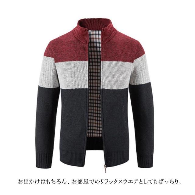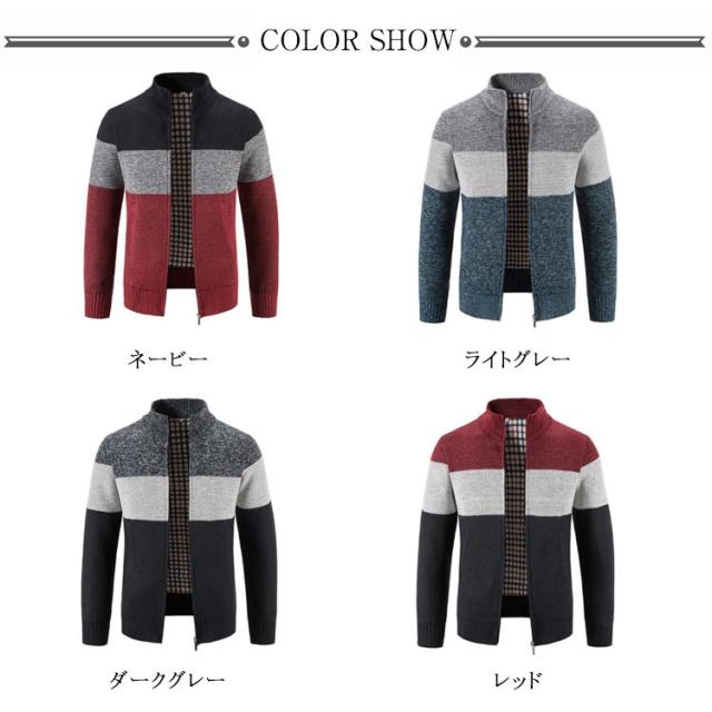 全4色・5サイズ!裏チェック ニットカーディガン 全4色・5サイズ!裏チェック ジップアップ カーディガン メンズ パーカー 防寒 ジャケット 厚手 立ち襟 保温 カジュアル 春物 秋物 冬物