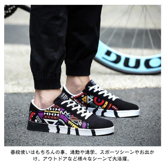 | おしゃれな柄がインパクト大のスニーカー。 派手な足元でシンプルなコーデもワンランク上のオシャレを楽しめます。 個性的なデザインで他人と差がつく1足、毎日のコーデが楽しくなること間違いなし。 普段使いはもちろんの事、通勤や通学、スポーツシーンやお出かけ、アウトドアなど様々なシーンで大活躍。 | |