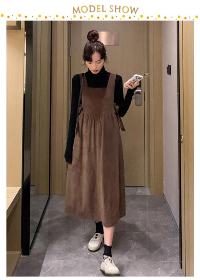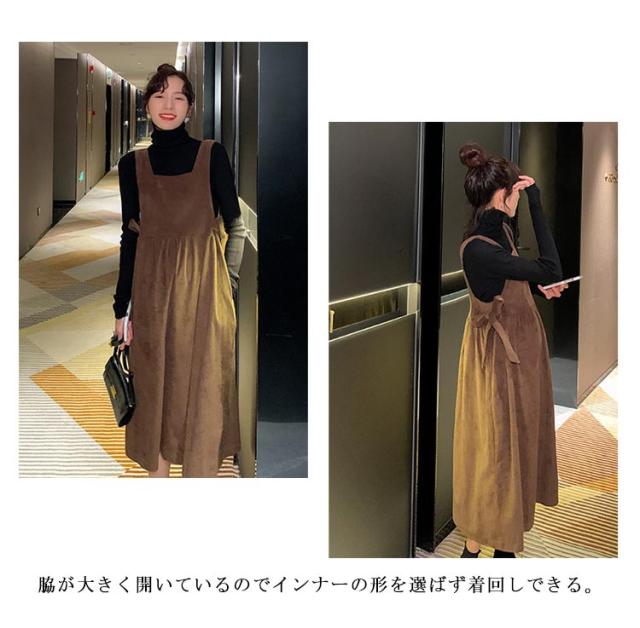 サロペット キャミワンピース ミモレ丈 ジャンパースカート ジャンパースカート キャミワンピ ワンピース レディース オールインワン ジャンスカ オーバーオール ロンパース シンプル 重ね着 可愛い 春 秋