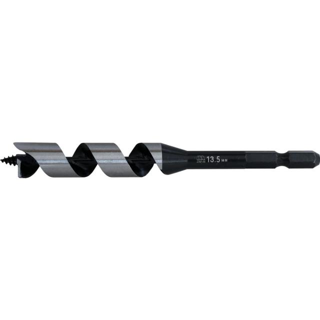 【用途】●一般木材13.5mm穴あけ用ドリル。【特徴】●ネジの力で穴あけ作業が楽に行えます。●浅い貫通穴向きです。●インパクトドライバ・電気ドリルでご使用いただけます。【仕様】●6.35mm六角軸