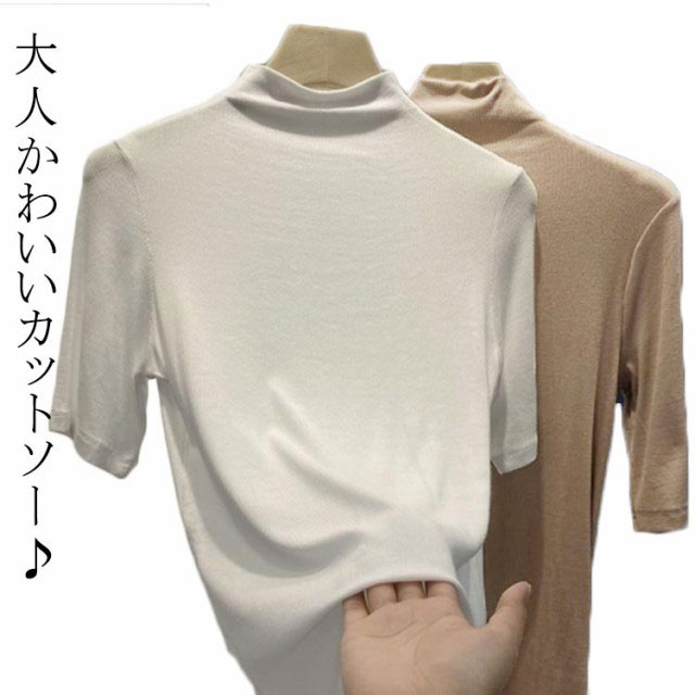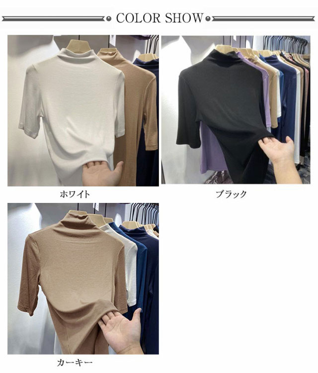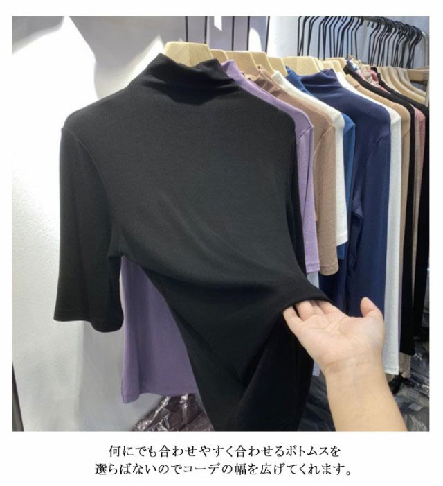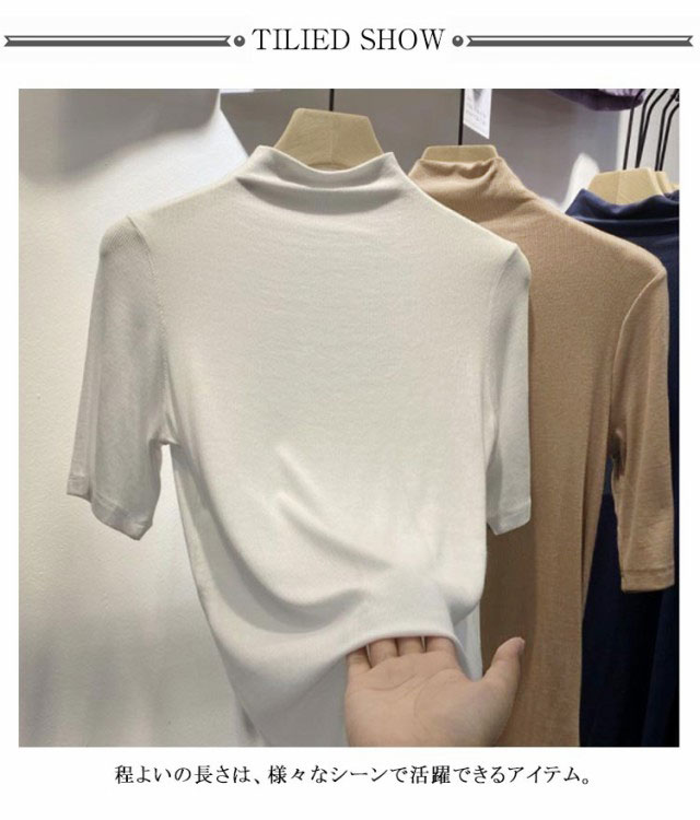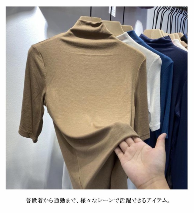 ハイネック タートルネック 半袖Tシャツ トップス カットソー tシャツ 重ね着 着?せ おしゃれ レディース 春 夏 無地 ゆったり 薄手 シンプル 五分袖 フィット スリム 大きいサイズ 20代 30代 40代 OL レイヤード 送料無料
