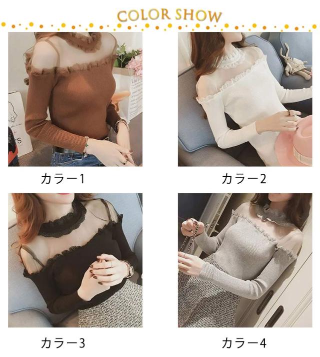 切り替え ニット セーター レディース ニットトップス 長袖 ニット セーター ニットソー 肩出し セクシー フェミニン きれいめ 大人 お呼ばれ 30代 40代 50代 M L XL 2XL 3XL