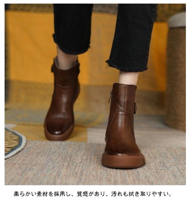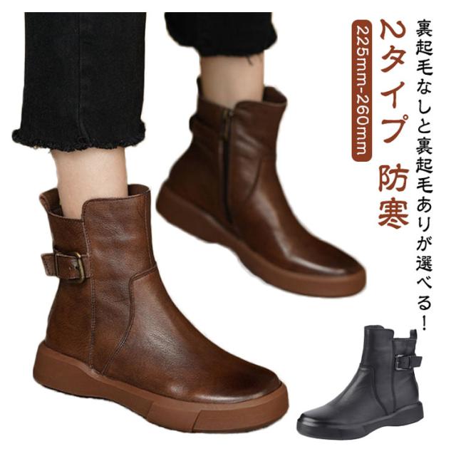 ショートブーツ レディース ブーツ PUレザー 厚底 痛くない 歩きやすい 滑り止め 柔らかい 2タイプ 裏起毛 秋冬 春 防寒 靴 大きいサイズ 美脚 大人 女性 無地 通勤 シューズ カジュアル きれいめ お出か 送料無料