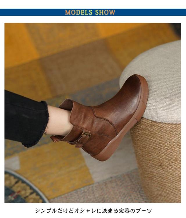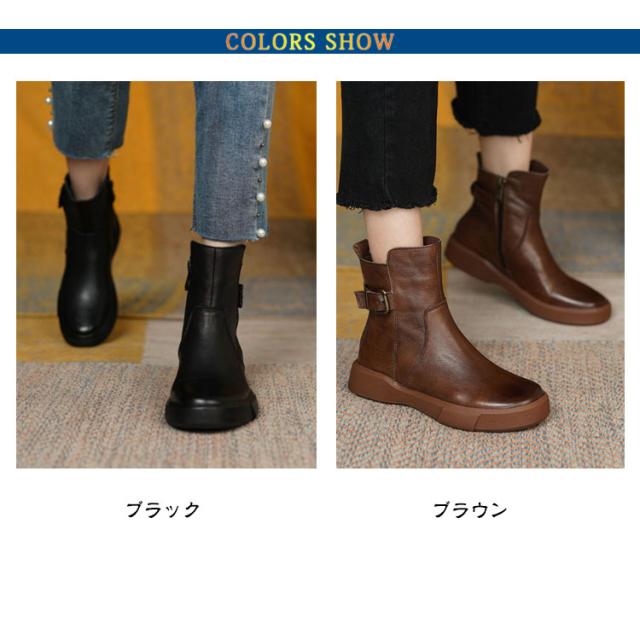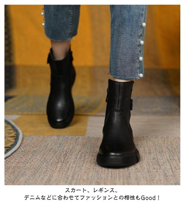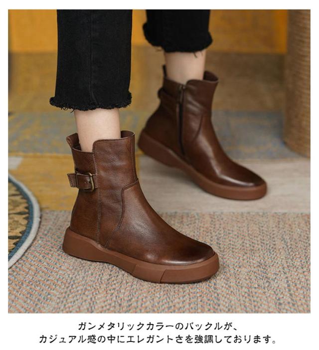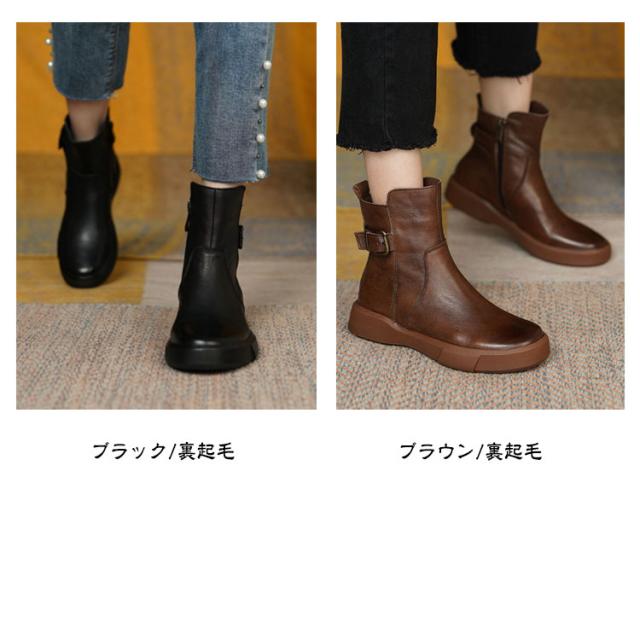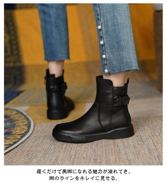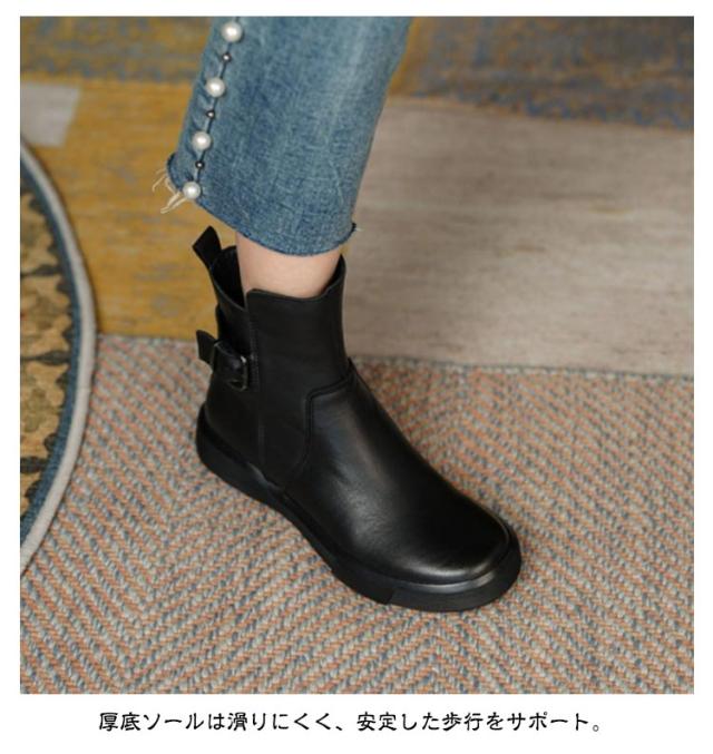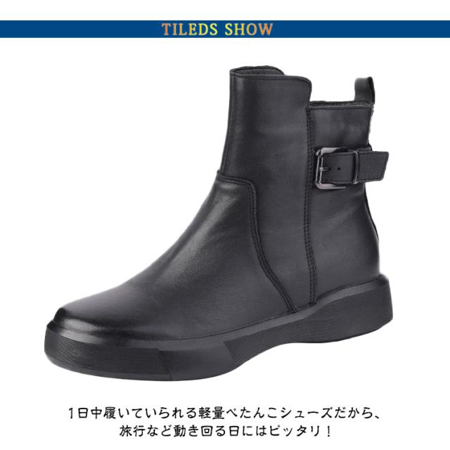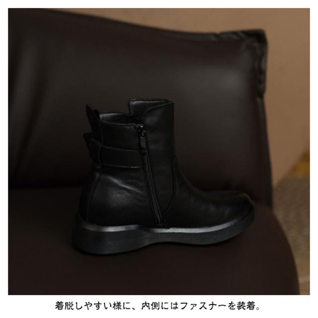 | 裏起毛なしと裏起毛ありが選べる!シンプルだけどオシャレに決まる定番のブーツ 着脱しやすい様に、内側にはファスナーを装着。 ガンメタリックカラーのバックルが、カジュアル感の中にエレガントさを強調しております。 柔らかい素材を採用し、質感があり、汚れも拭き取りやすい。 厚底ソールは滑りにくく、安定した歩行をサポート。 履くだけで美脚になれる魅力が溢れてき、脚のラインをキレイに見せる。 1日中履いていられる軽量ぺたんこシューズだから、旅行など動き回る日にはピッタリ! スカート、レギンス、デニムなどに合わせてファッションとの相性もGood! | |