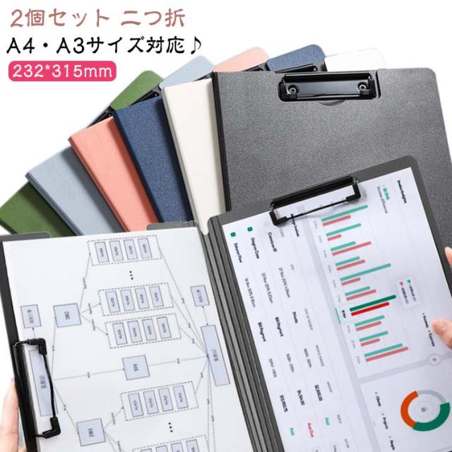 クリップファイル ダブル A4 A3 2個セット おしゃれ バインダー クリップ 二つ折 クリップボード ダブルクリップ ファイル ファイルケース ファイル収納 受験生 オフィス 仕事 会議 ビジネス 文房具 打ち合わせ 業務用