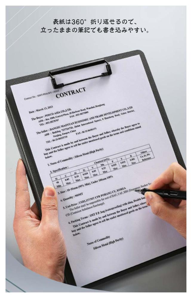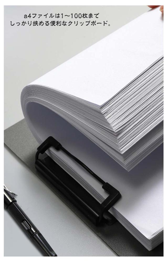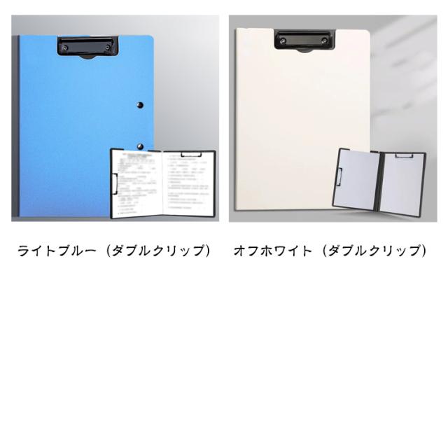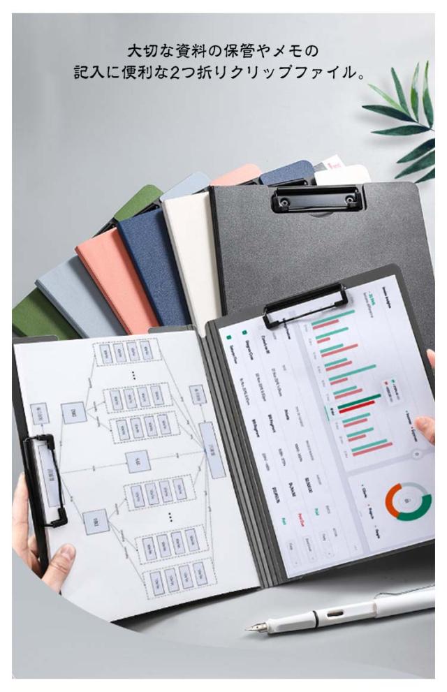 | A4・A3サイズ対応♪大切な資料の保管やメモの記入に便利な2つ折りクリップファイル。 グリップが縦方向と横方向に有り、使い勝手抜群。 ダブルのクリップで書類を2か所に分けて収納。 a4ファイルは1〜100枚までしっかり挟める便利なクリップボード。 表紙は360°折り返せるので、立ったままの筆記でも書き込みやすい。 表面に加工を施し、水、汚れに強くしております。 すべり止めストッパー付きのクリップが書類をしっかり固定します。 会社での打合せ、大学の講義、セミナー、面接、会議、商談、出張や展示会でのメモなど、様々な場所で気兼ねなく使えます。 | |