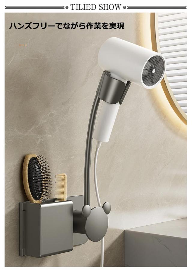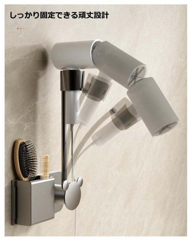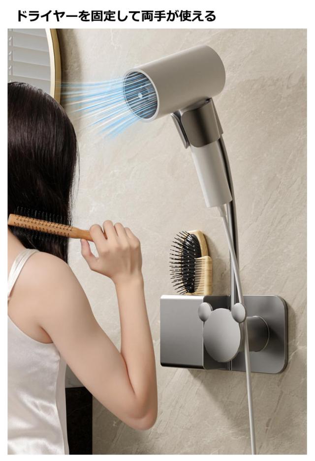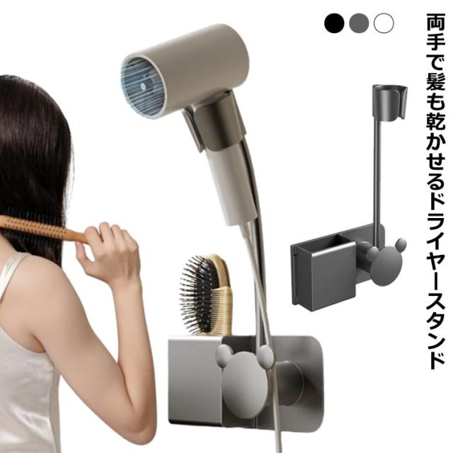 固定 立てる ハンズフリー 両手が使える アームスタンド ドライヤー ドライヤースタンド ドライヤーホルダー 収納 髪 乾燥 介護 美容 洗面所 脱衣所 バスルーム ドライヤースタンド 穴あけ不要