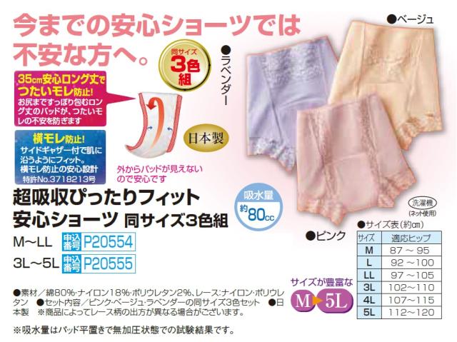 超吸収ぴったりフィット 安心ショーツ 3色組 M L LL 吸水量約80cc 尿漏れ 対策 パンツ インナー レディース 婦人服 ミセス シニア 女性 下着 肌着 ベージュ パープル ピンク 3枚 セット 吸水 ぱんつ シニアファッション 40代 50代 60代 70代 80代 fri p20554