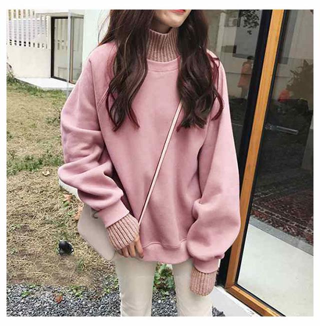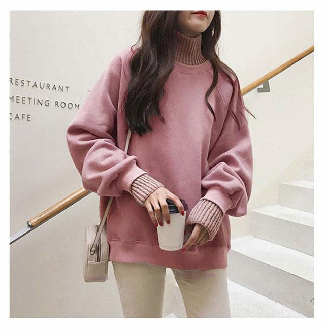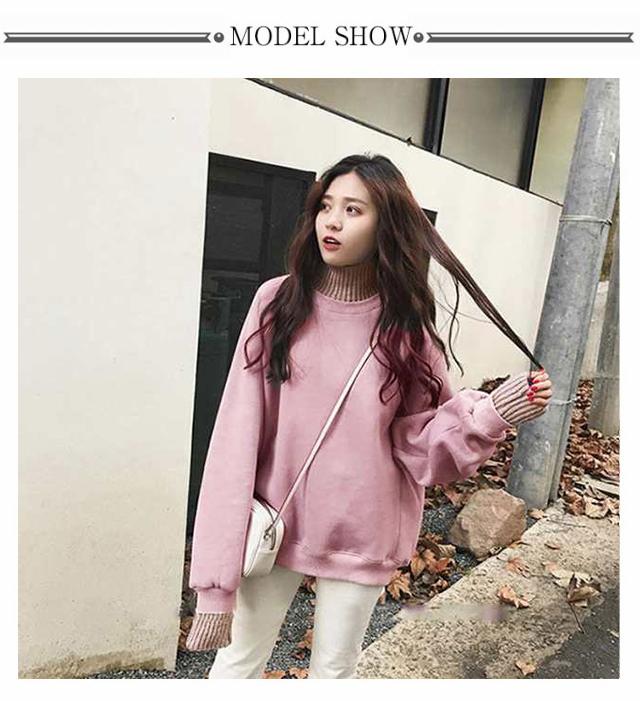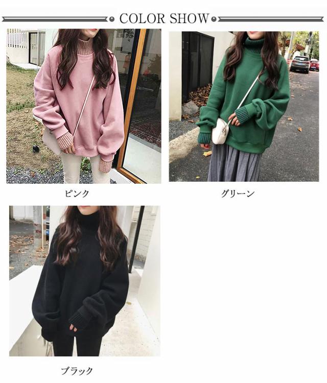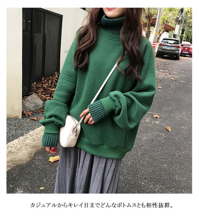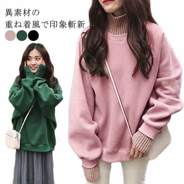 パーカー レディース 裏起毛 ニット 異素材 切り替え ハイネック フェイクレイヤード 重ね着風 スウェット トレーナー プルオーバー 厚手 カジュアル 無地 春 秋 冬