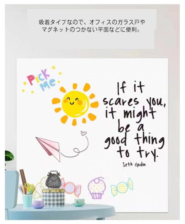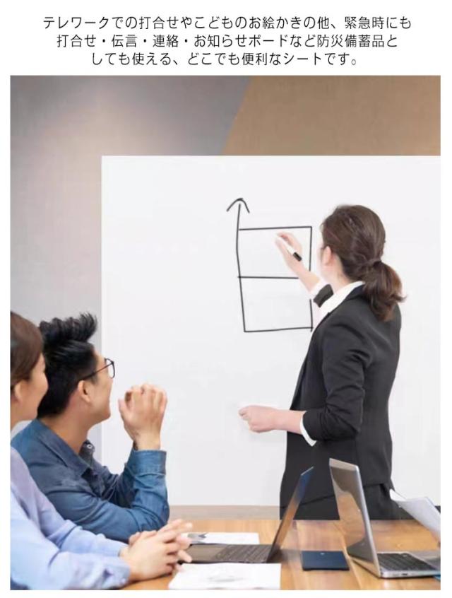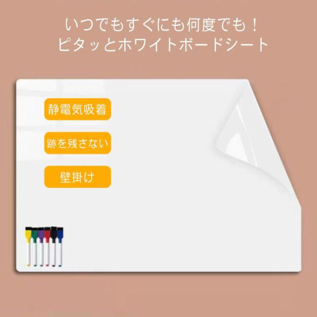 | ・いつでもすぐにも何度でも!ピタッとホワイトボードシート ・静電気で壁に貼り付き、接着剤を使用していないので、貼ってはがせてノリ跡が残らない! ・吸着タイプなので、オフィスのガラス戸やマグネットのつかない平面などに便利。 ・丸めたり、はさみやカッターで切ったりすることができるので、持ち運びも楽に行えます。 ・お手入れをすれば、繰り返し使え、経済的です。 ・テレワークでの打合せやこどものお絵かきの他、緊急時にも打合せ・伝言・連絡・お知らせボードなど防災備蓄品としても使える、どこでも便利なシートです。 | |