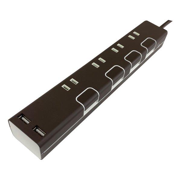 TOPLAND (トップランド) USB付き個別スイッチタップ 2m ブラウン 抗菌加工 STPC200-BR