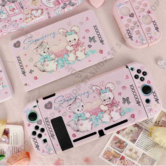 Switchカバー Swicth対応 OLED対応 カバー switchカバー ニンテンドースイッチ対応 全面保護 薄型 傷防止 汚れ防止 耐衝撃 取り外し簡単 ピンク ウサギ 可愛い Lolita