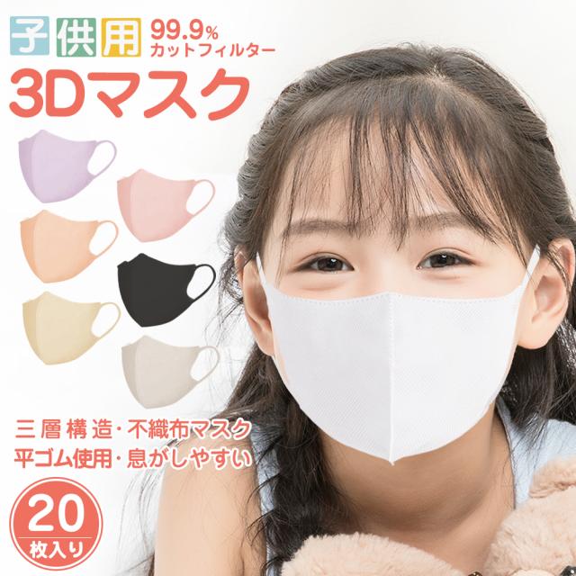 マスク 不織布 子供用マスク キッズ カラー 血色カラー 3Dマスク 子ども 立体 男の子 女の子 かわいい おしゃれ 血色マスク 平ゴム 耳痛くない 呼吸しやすい 3層 幼児 小学生 20枚 10枚*2 不織布マスク 春新色 爽快適 使い捨て 送料無料 cicibella シシベラ マスク