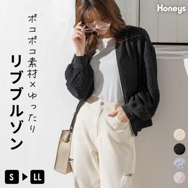 アウター ジャケット 春新作 レディース ポコポコ ボリューム袖 おしゃれ ショート丈 白 黒 SALE セール Honeys ハニーズ リブブルゾン