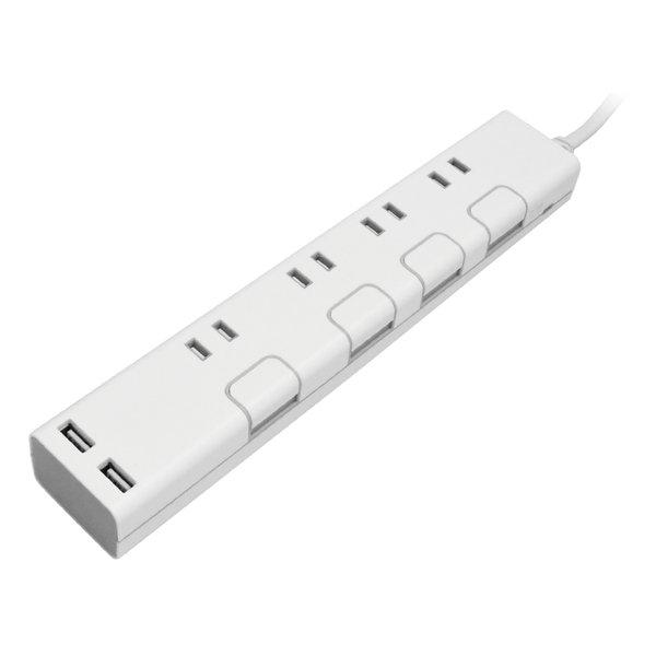 TOPLAND トップランドUSB付き個別スイッチタップ 2m ホワイト 抗菌加工 STPC200-WT(2587023)送料無料