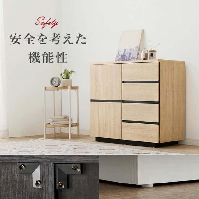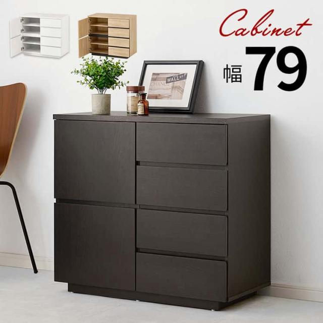 キャビネット 幅79cm おしゃれ 木目調 扉 引き出し4杯 収納棚 サイドボード リビングボード シンプル 3段階可動棚 スライドレール ディスプレイ棚 揺れ防止具付 家具 引越し 新生活 北海道・沖縄・離島別途送料見積もり メーカーより直送 RCC-1490