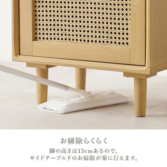 サイドテーブル おしゃれ ラタン テーブル ナイトテーブル かごめ編み 天然素材 インテリア 藤 天然木 扉収納 棚板調整 たっぷり収納 幅45cm 高さ55cm