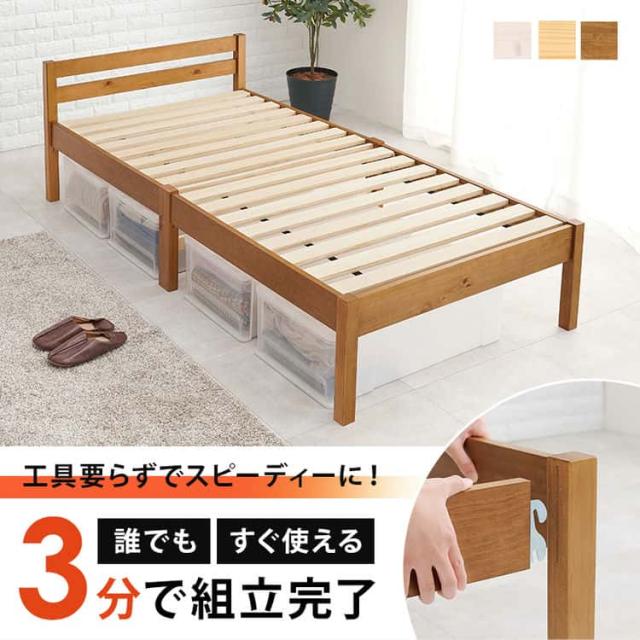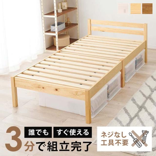 組立簡単 シングル ベッド シングルサイズ すのこベッド ベッドフレームのみ 木製 ネジなし 工具不要 シングルサイズ 幅100 ベッド下収納 天然木 パイン材 一人暮らし