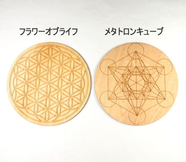 フラワーオブライフ コースター 丸型 直径10cm 神聖幾何学図形 木製 バスウッド 台座にも インテリアにも fol182
