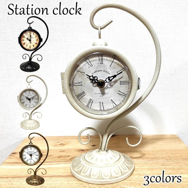 置時計 ステーションクロック 両面 ハンギング 雑貨 アンティーク レトロ かわいい アメリカン 全3色展開 インテリア おしゃれ ビンテージ 店舗