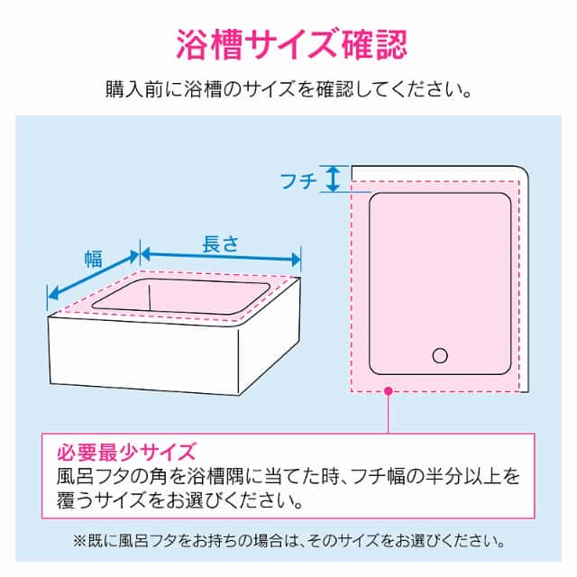 ※風呂ふたを選ぶ場合は、ご使用になる浴槽の縁に充分かかる大きさのものをお選びください。