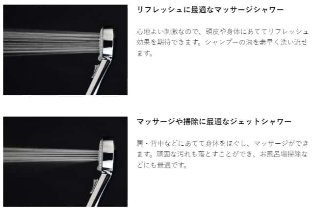 - ジェットシャワーで体をほぐしてマッサージができます。また、お風呂掃除にも最適です。