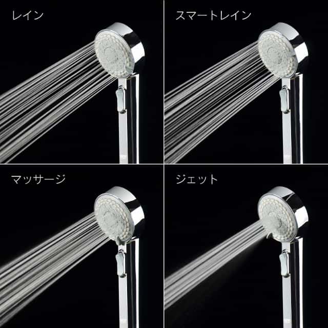 ・レイン・スマートレイン・ジェット・マッサージの4種類の水流に切替ができます。